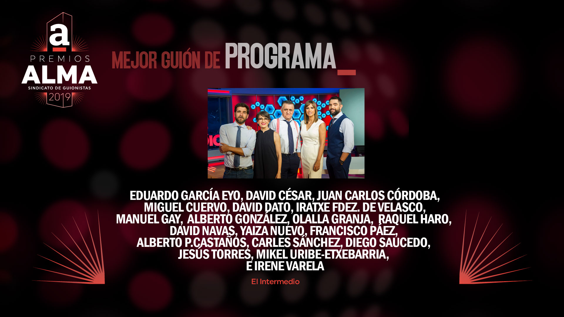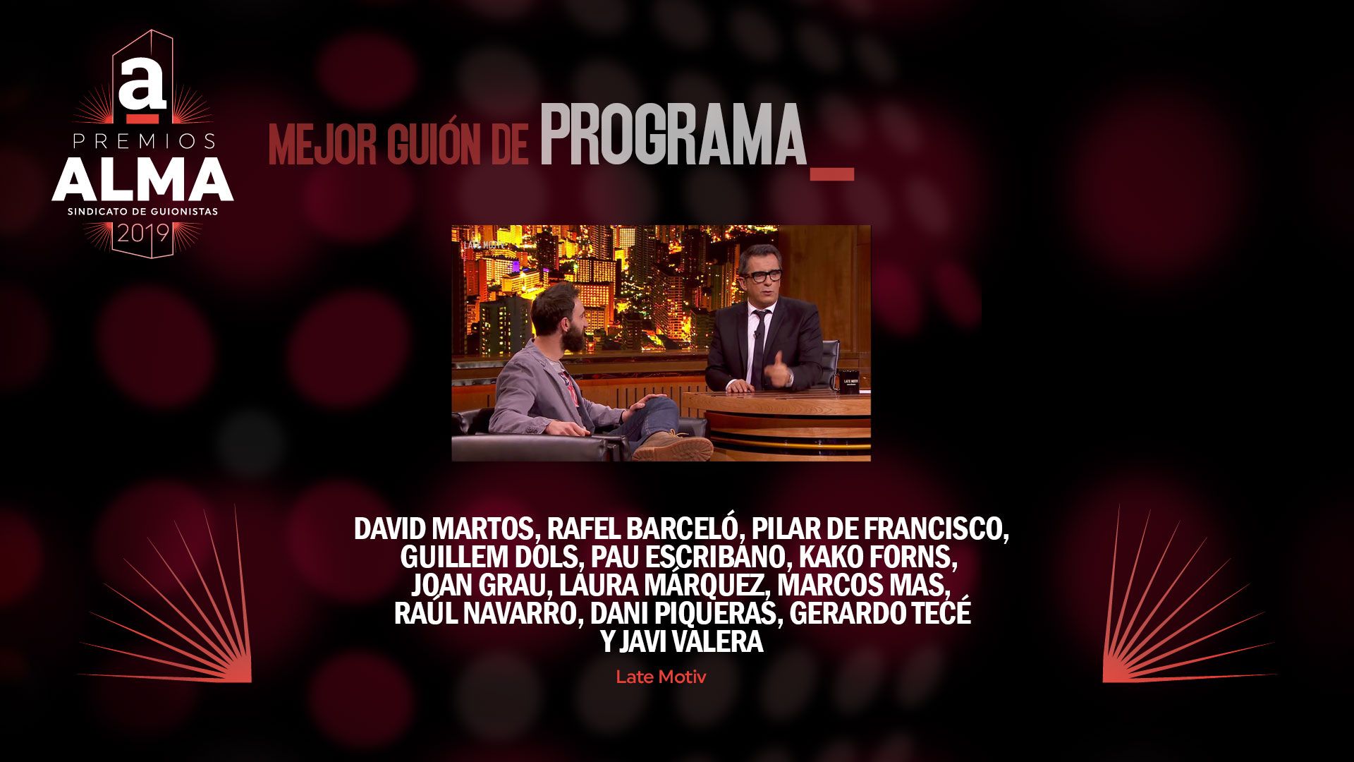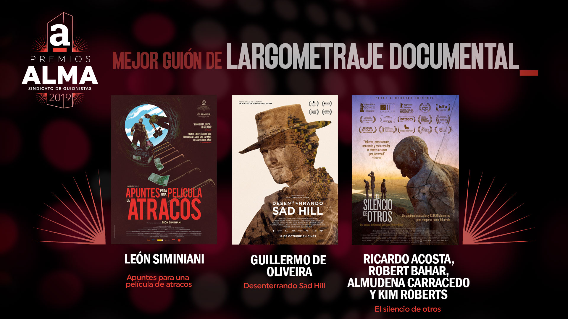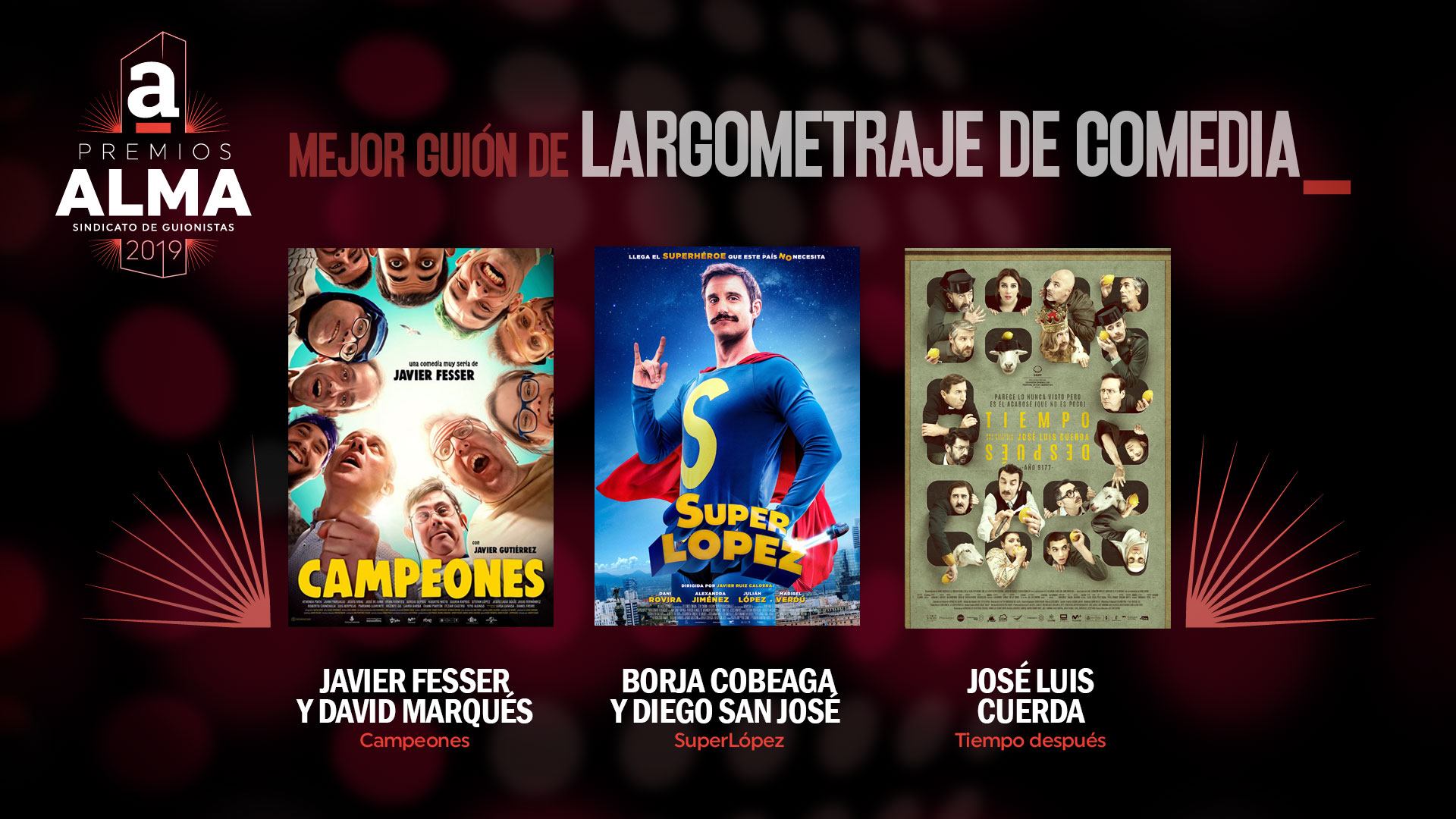 A continuación presentamos las obras y guionistas que se han hecho con las nominaciones a los Premios ALMA del Sindicato de guionistas de España